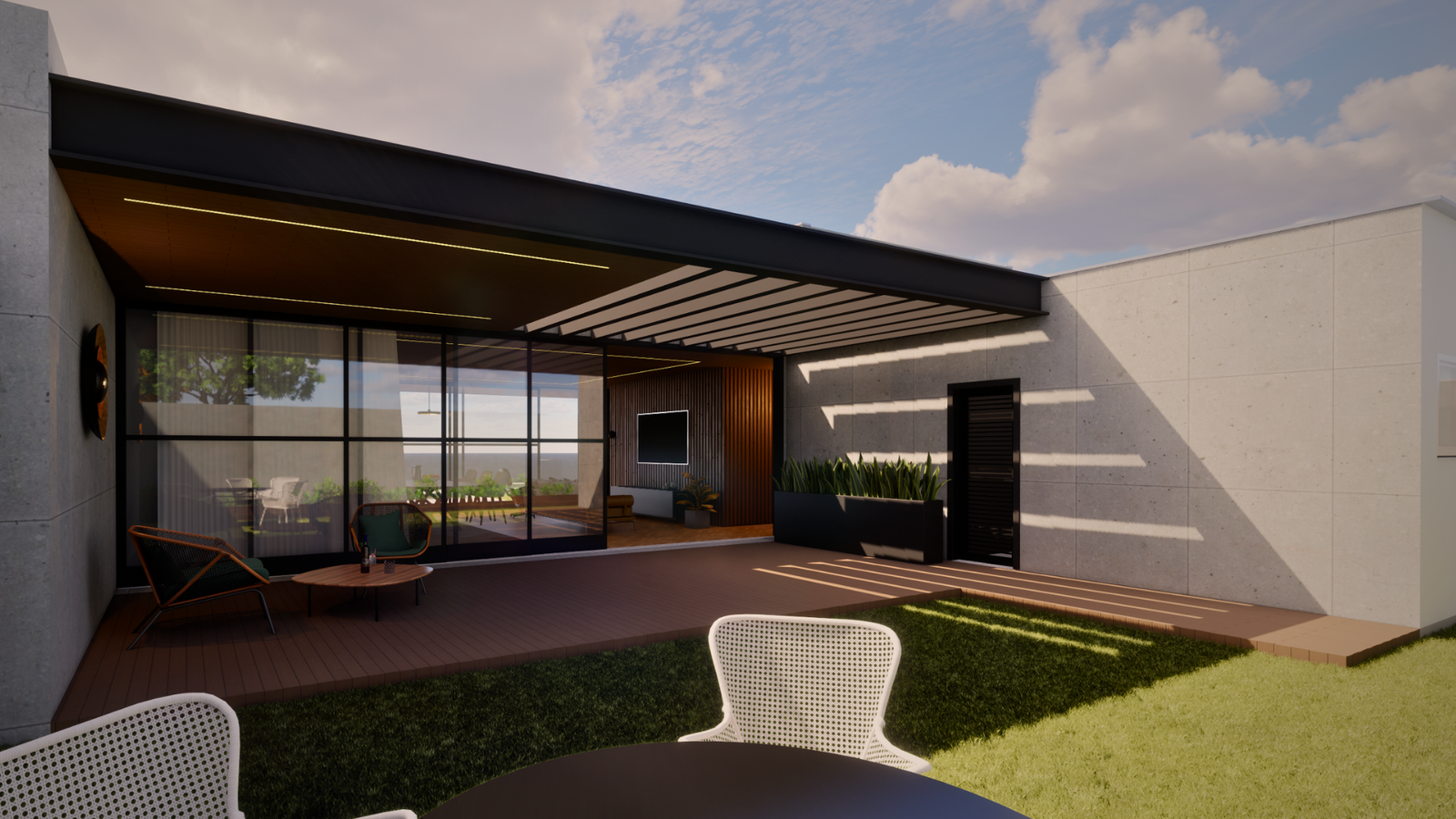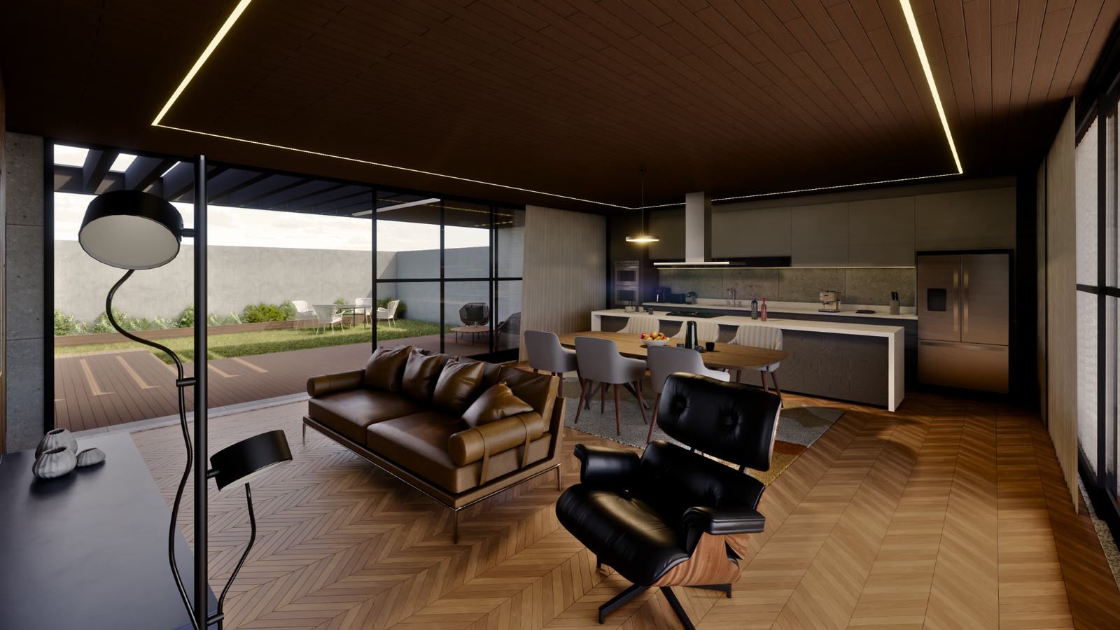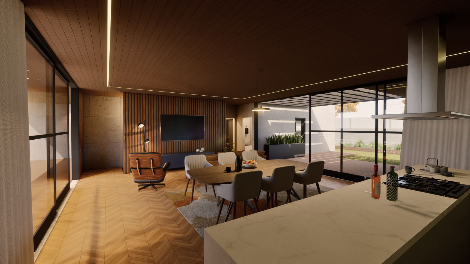 Um tributo à arquitetura modernista brasileira, a Casa Paulista é uma residência térrea que traduz a simplicidade sofisticada do morar com identidade. Com linhas retas e volumes bem definidos, ela se ancora no uso honesto de materiais como o concreto aparente e a madeira natural, que juntos criam uma estética atemporal, cálida e elegante. Os espaços interiores se conectam sem barreiras: cozinha, sala de jantar e sala de estar formam um núcleo fluido que se abre ao exterior, diluindo as fronteiras entre dentro e fora. Essa integração com o entorno proporciona luz natural, ventilação cruzada e convivência — elementos centrais da escola paulista de arquitetura. Mais que um abrigo, a Casa Paulista é uma manifestação do viver brasileiro, onde forma e função se encontram com simplicidade, elegância e autenticidade.